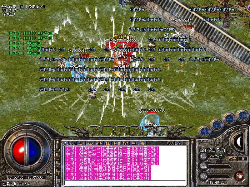 顶级狂暴城:进入顶级城每秒收钱2元宝,每秒得100万经验,边打宝边升级,