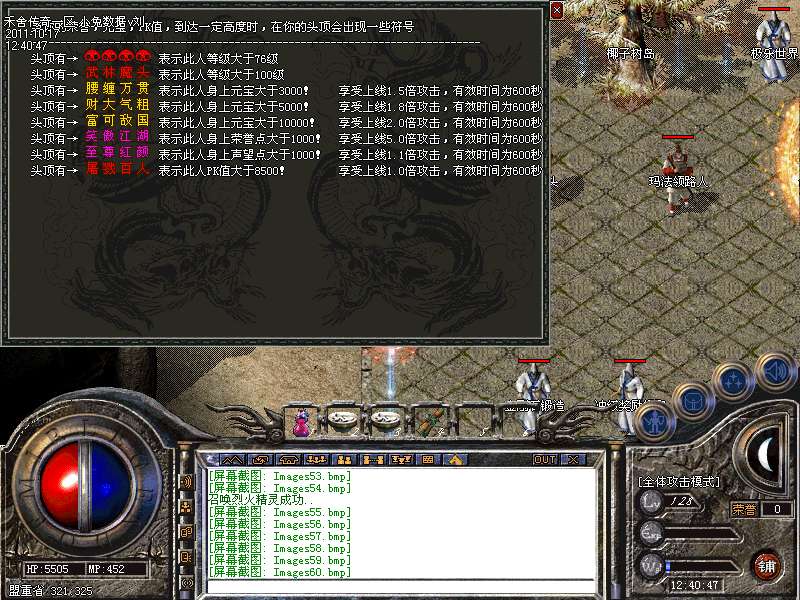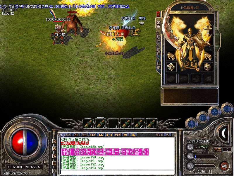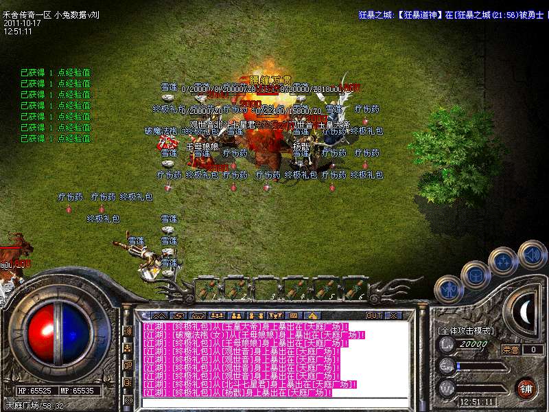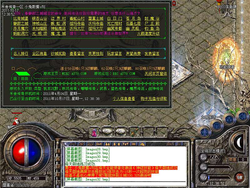 公告:快速升级可到丛林迷宫或潜龙峡谷烧蜘蛛,丛林迷宫蜘蛛较多,道士68级召唤麒麟神兽1只。法师可诱惑蚂蚁类怪物当BB!