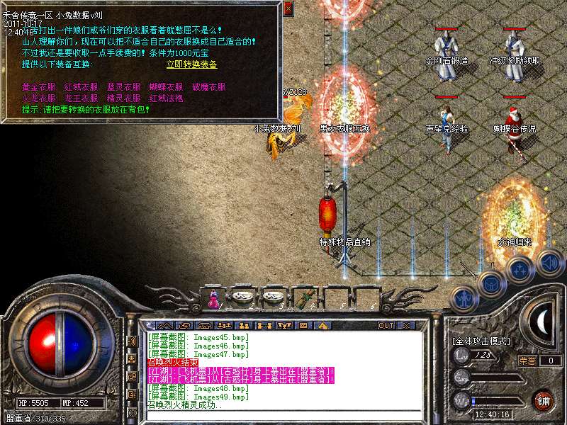 声望兑换:声望可洗红,变性,变职和兑换经验的功能,200点声望兑换3000万经验值,声望可在神仙和蝴蝶谷主身上获得!