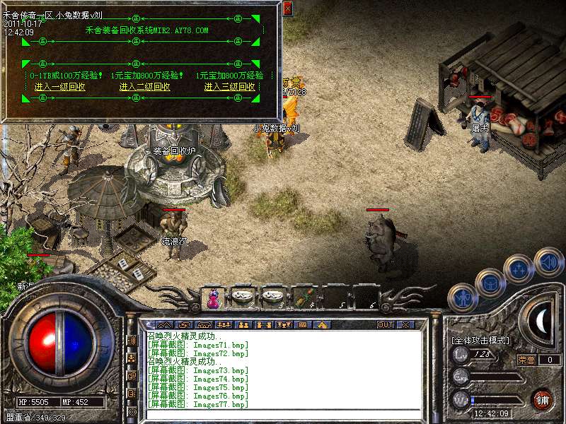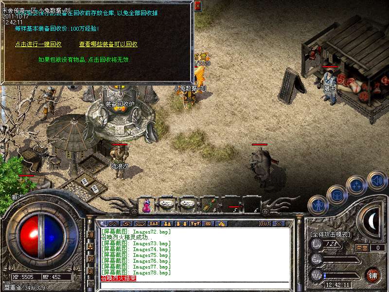 装备回收:完善的装备一键回收,可回收仙人蒲扇、寒铁剑、光子剑、钢铁手镯、末日、真爱钻石、布娃娃、铁血勋章、等系列装备!