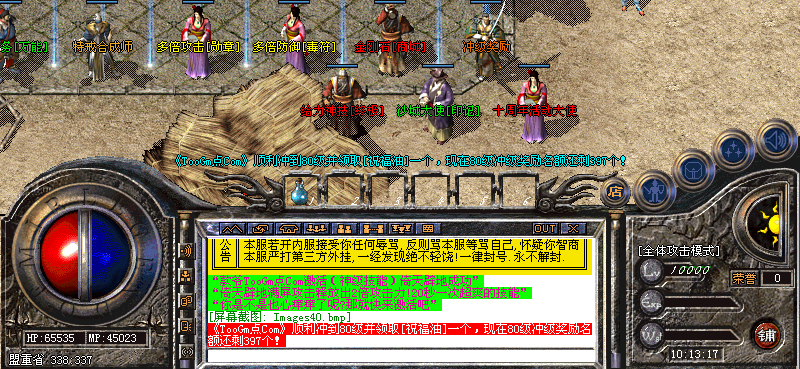 模拟攻城:全服100以上玩家才可以进入,下午15,晚上19点各一场,再现千人攻城场面,杀死守卫及城主,获得不同数量元宝,即杀即得