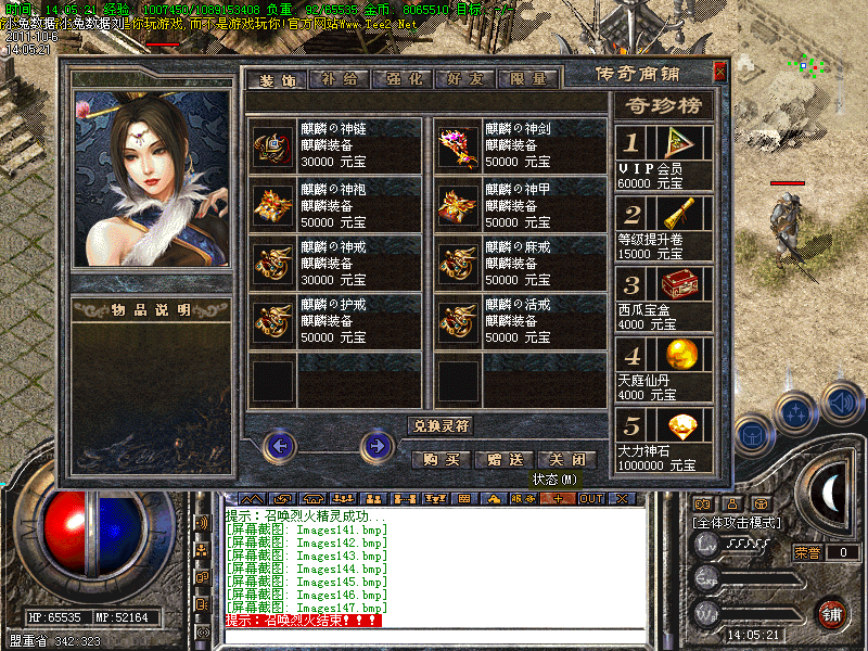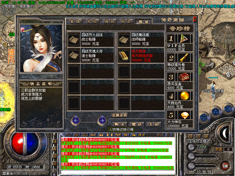 15.玩家可以拿元宝在[商铺]里购买自己需要的物品.商铺东西很多,全是辅助类物品,没有任何装备出售
