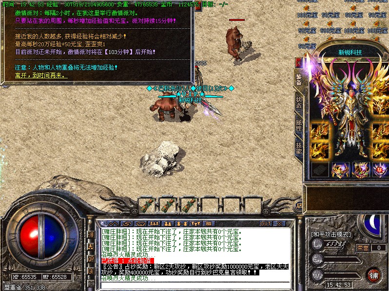 【攻沙奖励】: 新区第3天统一举行集体拿沙,新区奖励10W元宝 老区天天拿沙,奖励5W元宝!