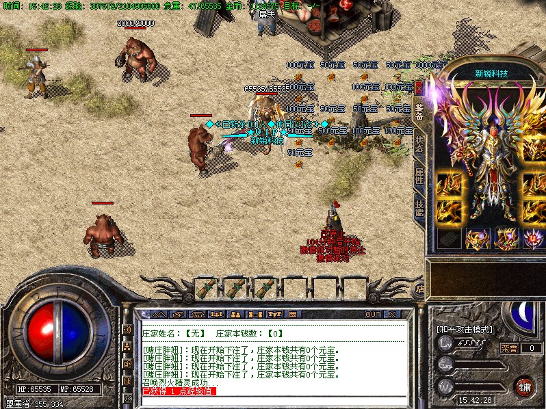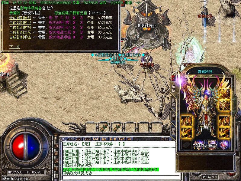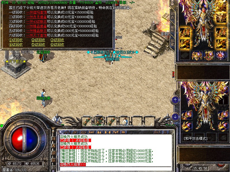 【装备回收】: 祖玛以上装备(包括祖玛装备)都可回收元宝和经验 原地打@回收即可回收装备!
