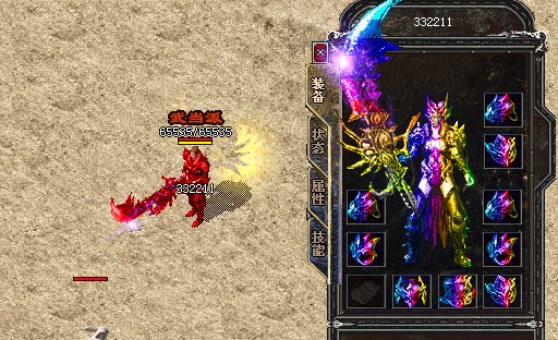 商铺出售的超级武器可以用高级精炼石提升,提升到最高等级后,幸运项链就会附加“开天劈地”技能,全屏超强攻击!
