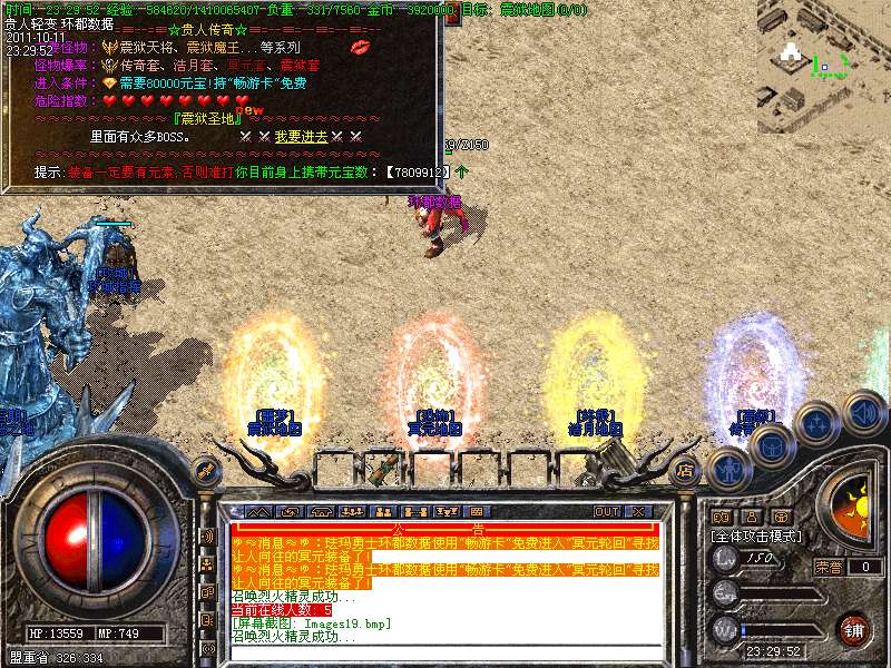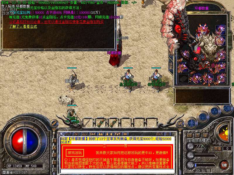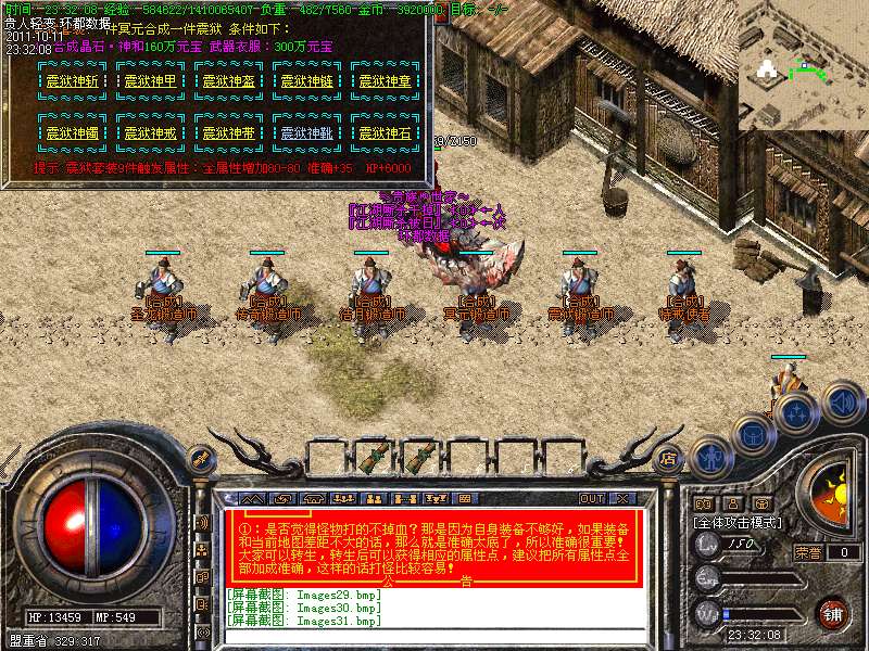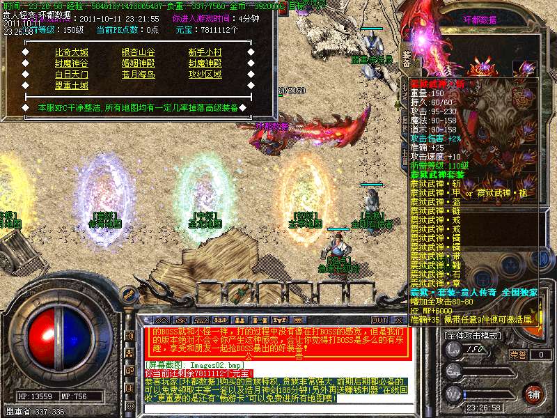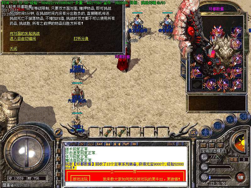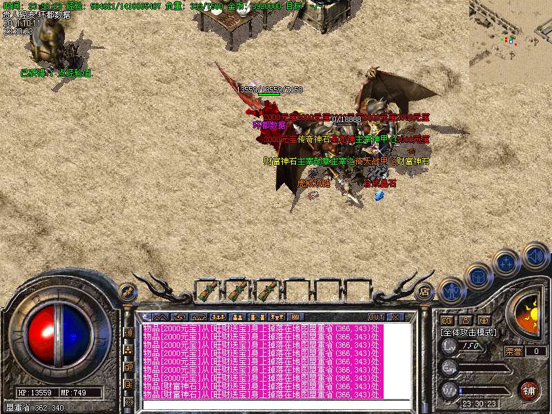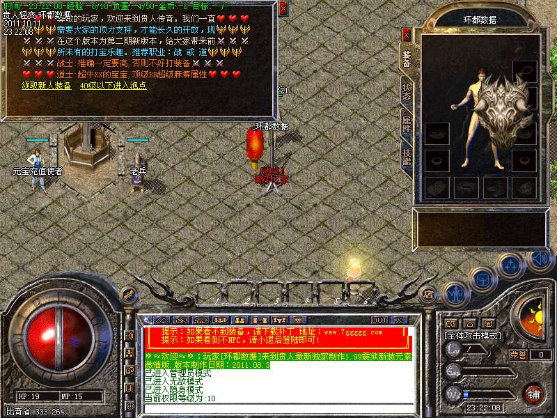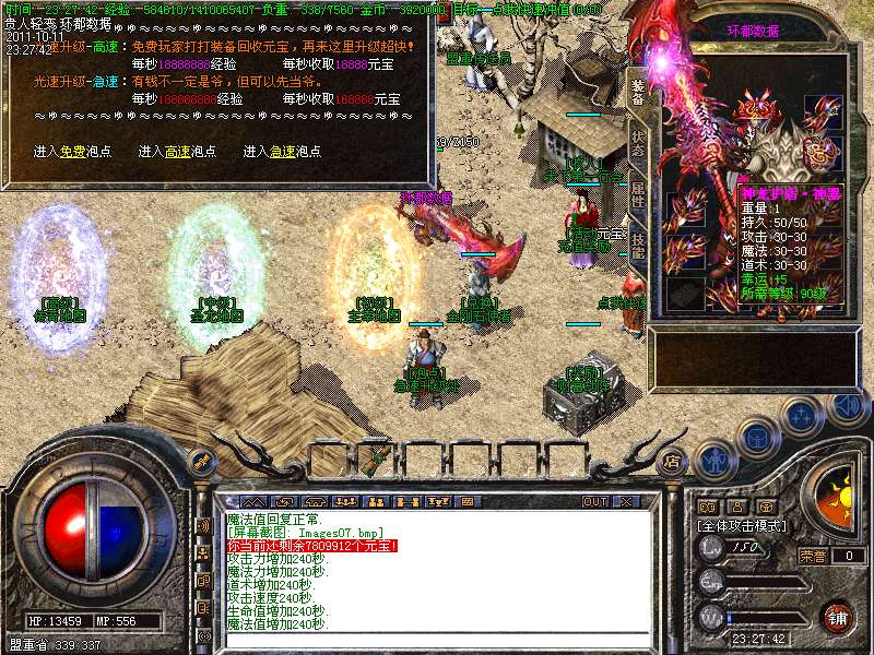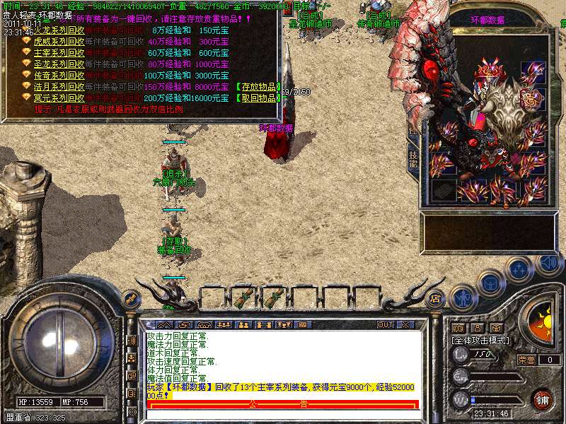 ① 装备循序:火龙套装—虎威套装—主宰套装—圣龙套装—传奇套装—浩月套装—冥元石化套—震狱武禅套—雄霸风云套(超级牛XX)。本服所