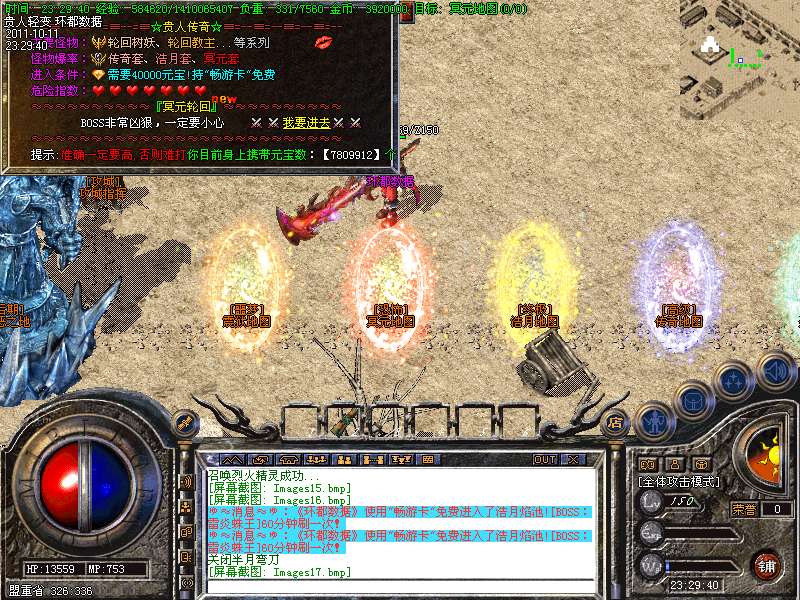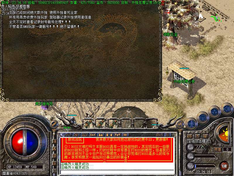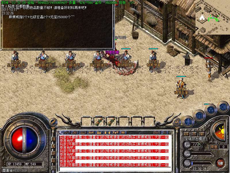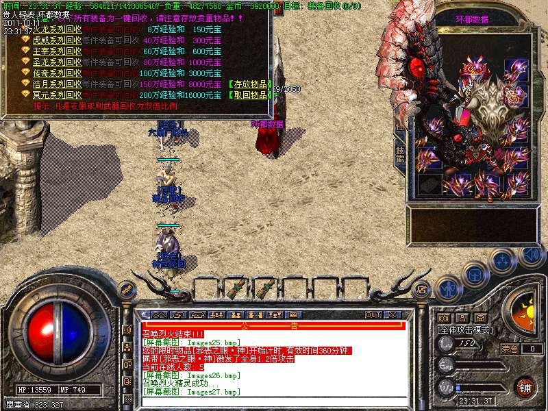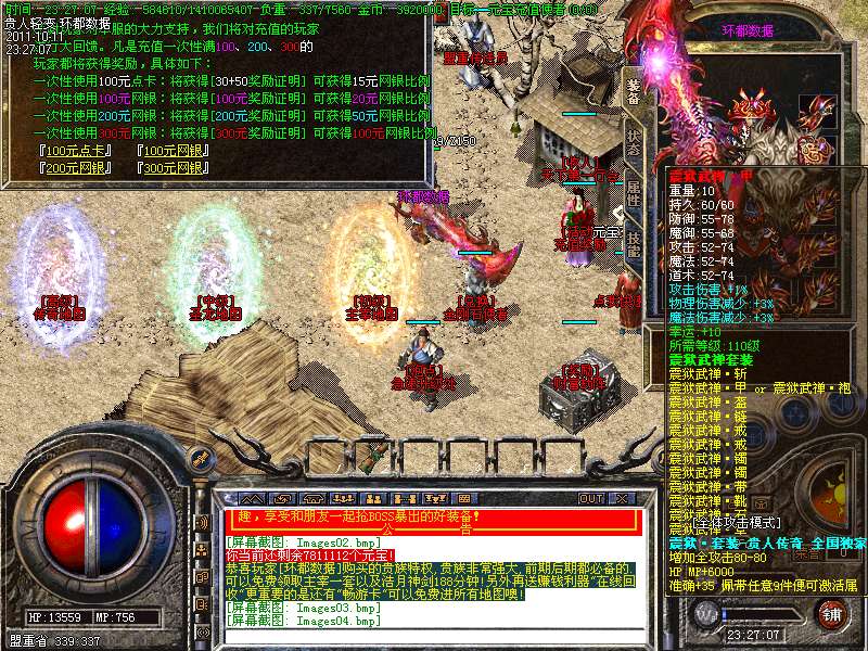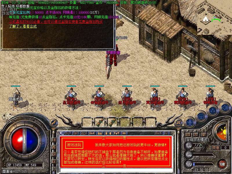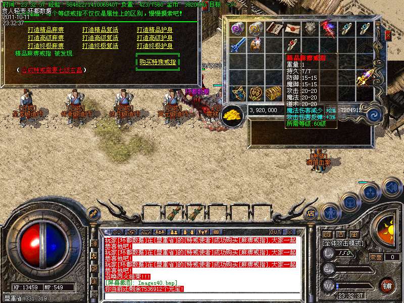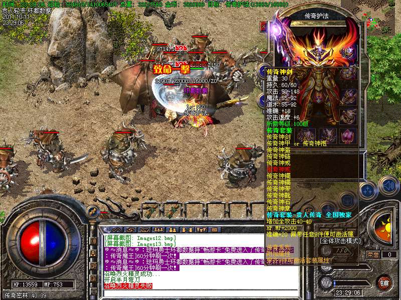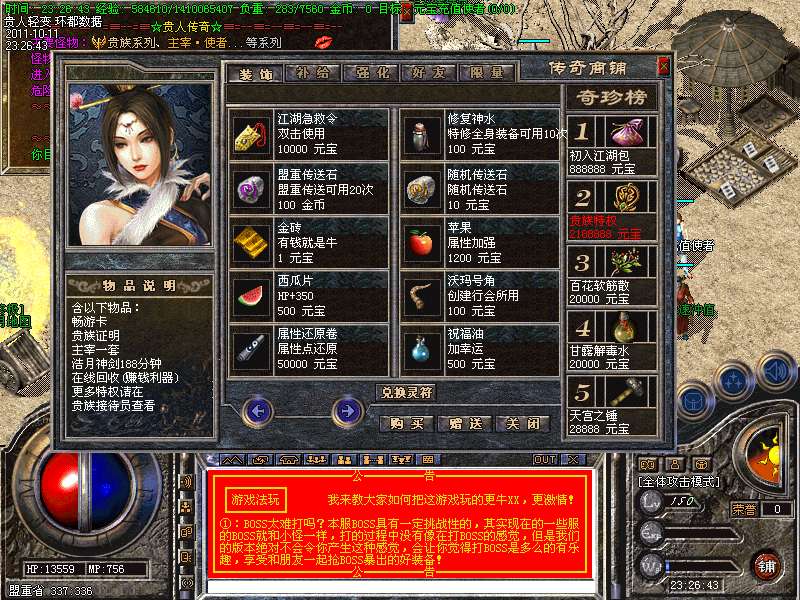 ① 装备循序:火龙套装—虎威套装—主宰套装—圣龙套装—传奇套装—浩月套装—冥元石化套—震狱武禅套—雄霸风云套(超级牛XX)。本服所