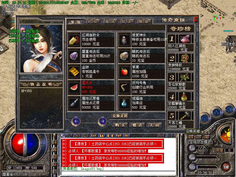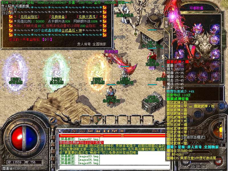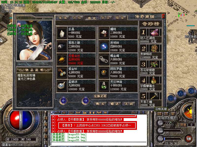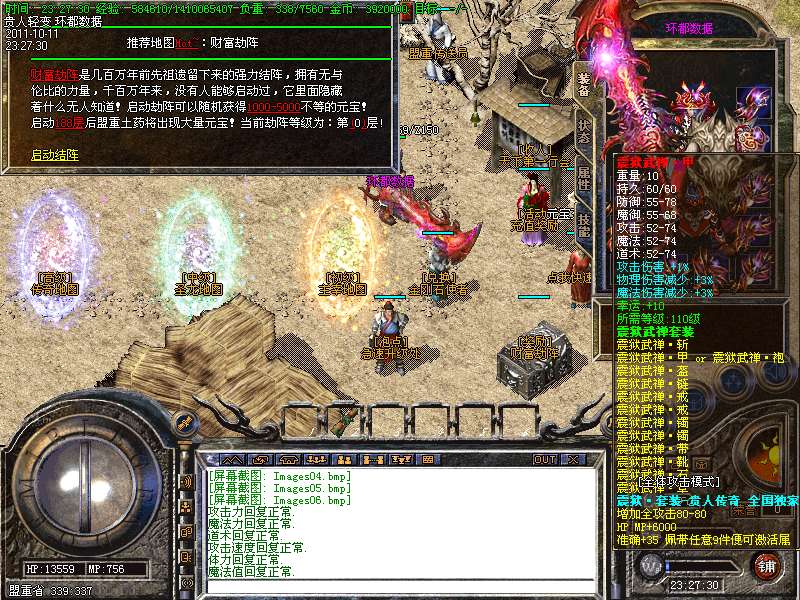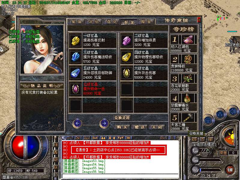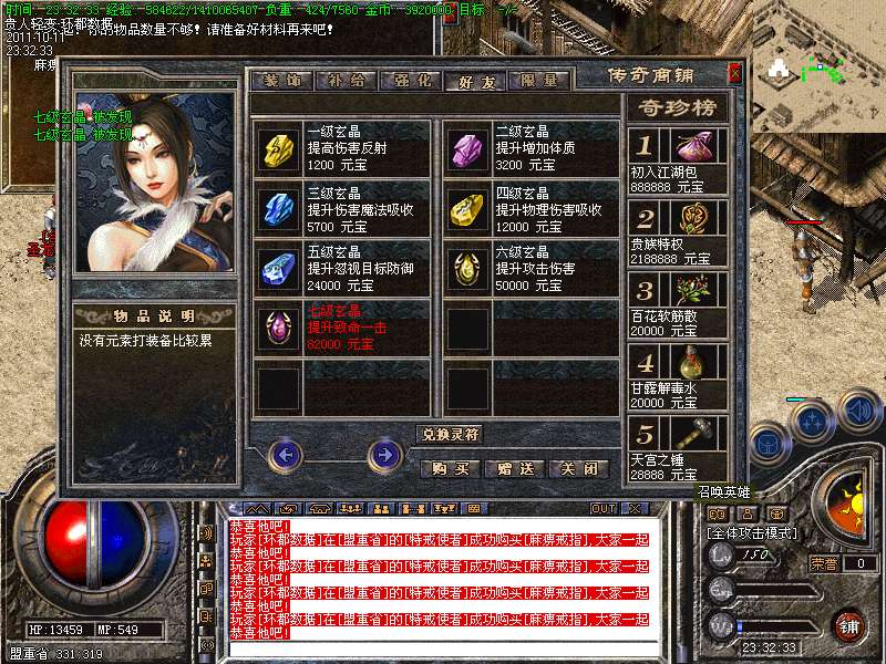 ⑥ 财富神石、合成晶石、震狱宝箱、物品用处介绍!财富神石:玩家打到财富神石可以去土城341 342处免费抽取元宝喔!合