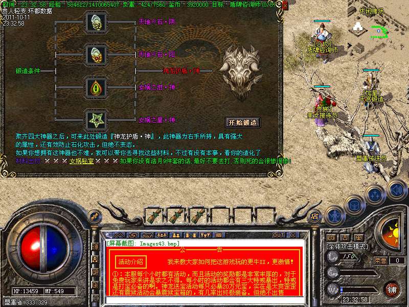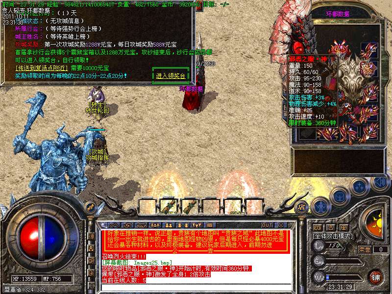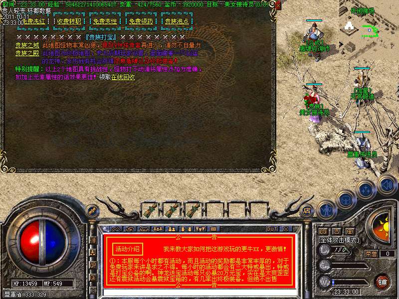 ④ 本服每个小时都有活动,而且活动的奖励都是非常丰厚的,对于免费玩家来讲是求之不得。每小时的活动都会有三大特戒暴