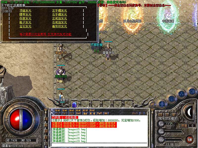 〖介绍〗PK场刷出的三只雷霆战士,护殿红衣,青衣尊者必爆精炼宝石一个。很有可能暴出神泣勋章和天下勋章哦
