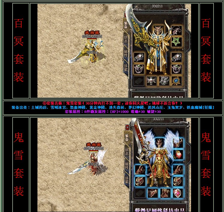 游戏必知:本站封顶180级。顶级套装攻击过1200点。装备爆率非常之高。麻痹护身传送复活轻松获得。为了维护法师的利益,本服绝对不出破护身属性的物品!
