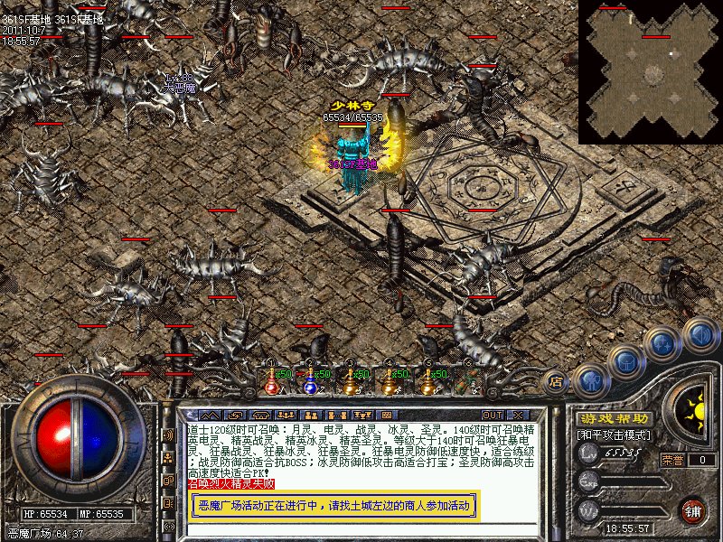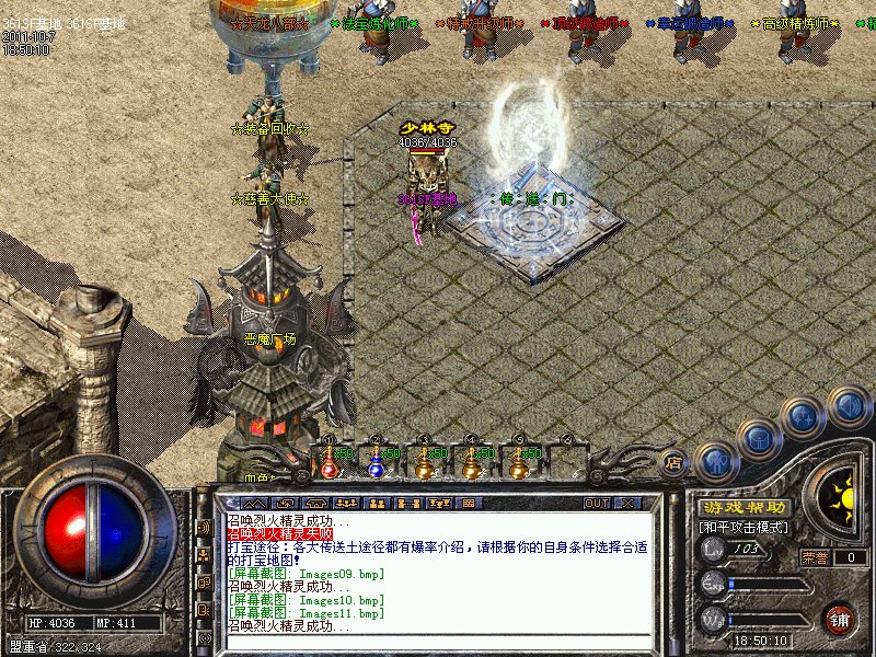 介于传奇城市地图太多,我们只留下土城和比奇两个城市,练级区也缩减成三个,无限刷怪,吃个十倍经验去升级去吧!