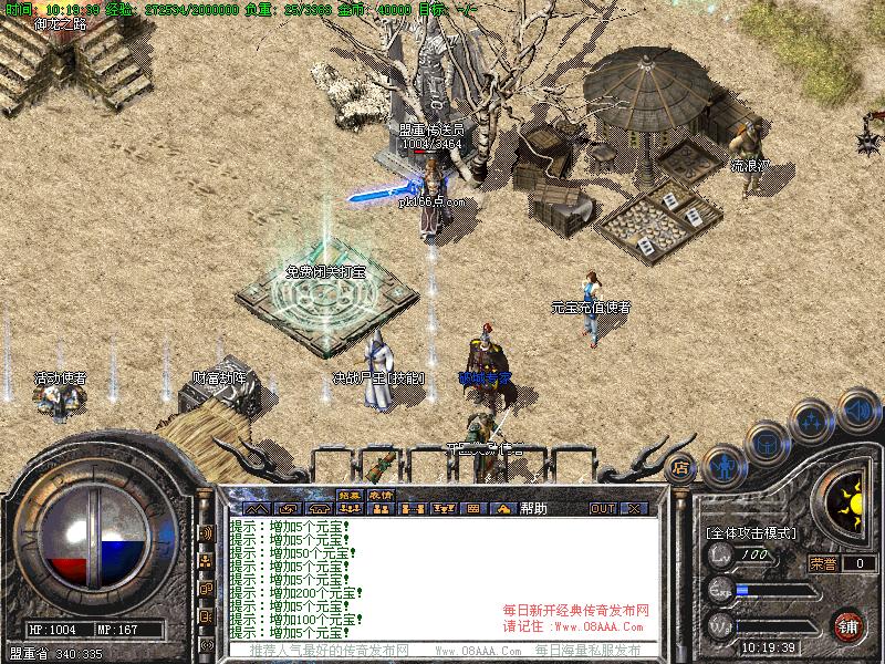 【更新】财富劫阵,BOSS爆出财富神石可以启动财富阵,启动的同时可以随机获得元宝!!满188层土药将会出现大量的元宝!!具体请查看土城财富劫阵NPC!!