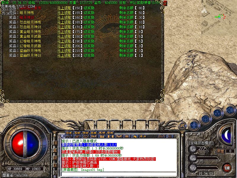【升级奖励】210奖幻香皓月神剑 220奖蓝幽妖月神袍 230奖蓝幽妖月神剑