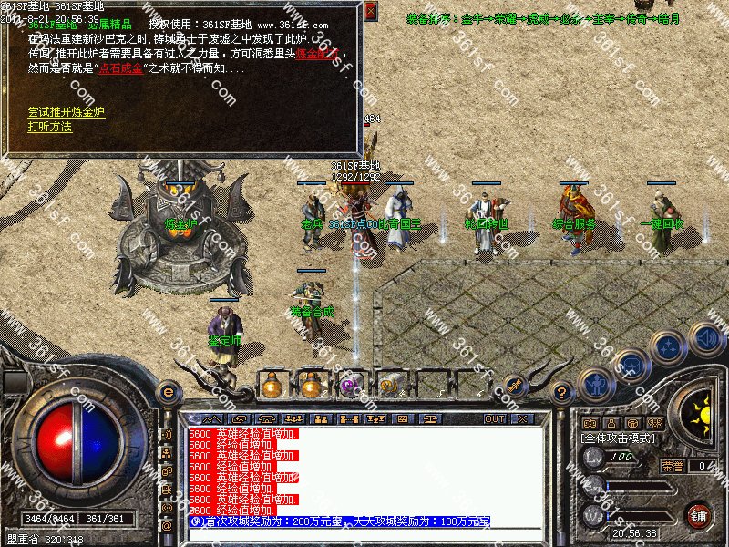【攻沙奖励】: 开区后第2天拿沙,新区奖励元宝288万,老区激情拿沙奖励100万