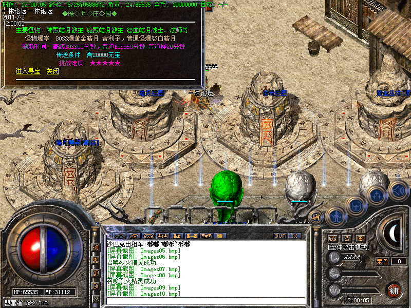 3.隆重推荐两大地图→黄金丛林:战士和法师可引怪群攻,爆大量怒血等装备回收超级丰富元宝,同时每只怪蕴藏大量经验,故此地图也可作为练级圣地;