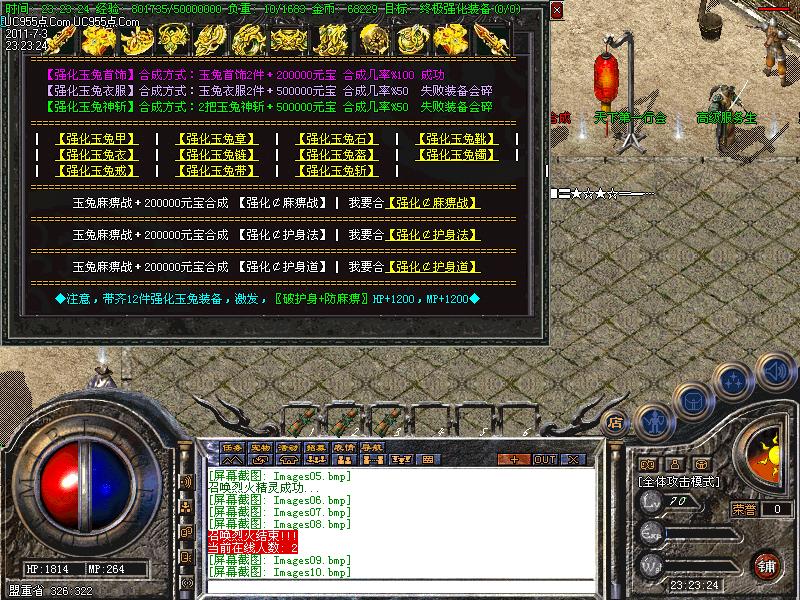 本服暴率较高,大家很快有玉兔级装备,稀世装备可以在土城合成非常简单,版本是在仿盛大1.89基础上,更新到了最新装备和装备技能
