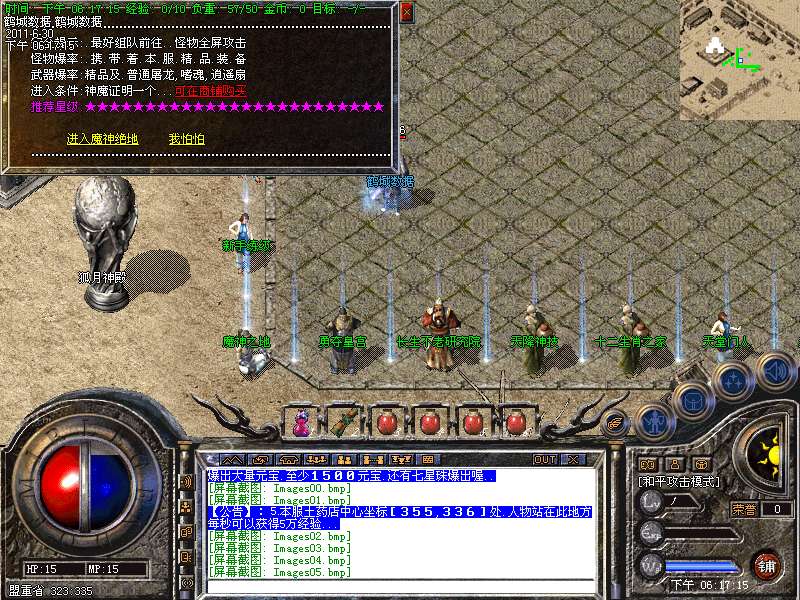 【公告】:⒌本服土药店中心坐标[355,336]处.人物站在此地方每秒可以获得5万经验...