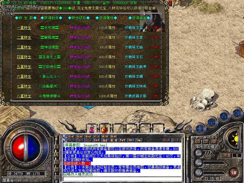 最新特色:行会掌门可使用命令:@行会令 召集本行会所有成员到自己身边一起战斗,召唤一次需要500元宝。