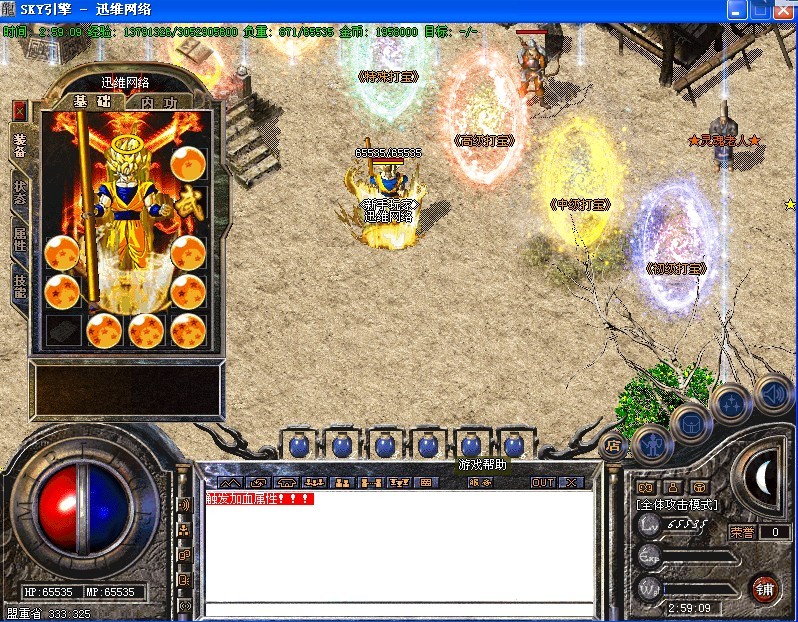 温馨提示:打到多余的装备千万别丢掉,在装备回收处可换取经验或元宝!!在装备合成处可合成高级装备!!