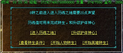 转生功能,最高可转十二转,普通转生送大量属性点,超级转生送超多属性点,超级转生物品请打命令@帮助,查询如何获得!