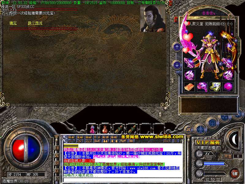 【公告】:本服为2011年6月最新改版真彩3D轻变版,保证全国独家首发,地图漂亮装备好看,适合长期散人骨灰玩家。