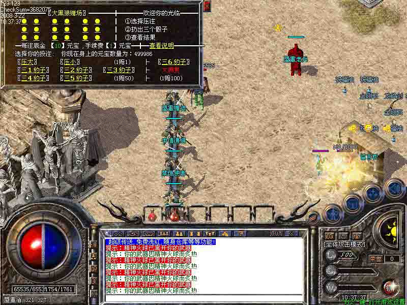 加入了最新的坐庄赌博功能,调整金条暴率,以赌金币的方式,再兑换元宝。这样就能避免赌博刷元宝的漏洞。直接赌博元宝会产生漏洞,致使有的玩家有上万的元宝!