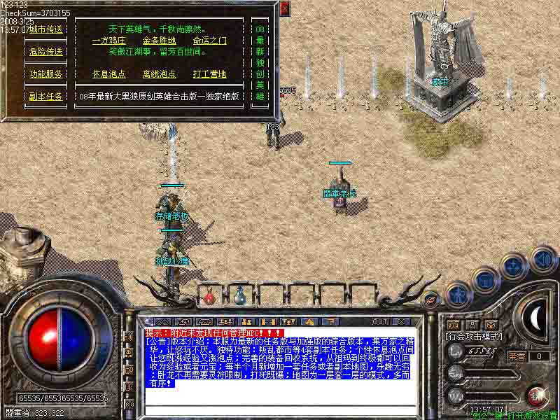 本次在数据库上加了盛大里的天龙装备,星王装备等等。如果需要完全FSD的可以配合数据库来调整暴率即可,同样也可以调整暴率为微变版本。此明文版本方便的解决了一版多用。目前的版本就是92TH的英雄合击加强版和任务版的综合。