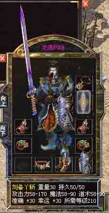 刘备ㄚ斩 幸运+30 准确+30 攻击58-170 魔法58-90 道术58-90