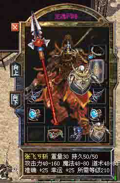 张飞ㄎ斩 幸运+25 准确+25 攻击48-160 魔法48-80 道术48-80