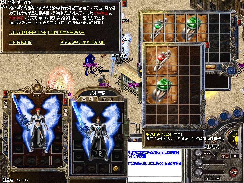 【盛大新装】炎龙套装,雷龙套装,青龙套装,紫金嗜魂法杖,赤金逍遥扇,战意麻痹戒指,聚魔护身戒指,八卦护身戒指,涅槃复活戒指,金牛法杖,金牛战斧,金牛道剑等等