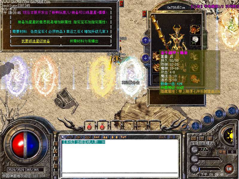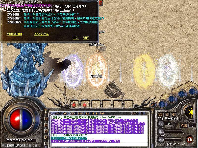 GM去搜服---1.85内挂2009年9月最新版本,本服在1.85的基础上添加了新地图【幽灵船-蚂蚁洞-安其拉】等新地图金牛装备元素灵魂系统!