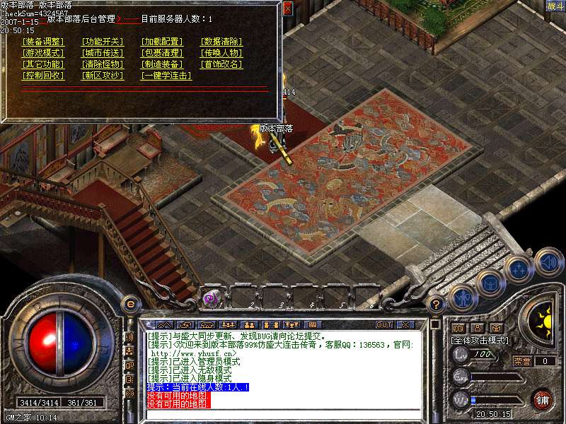 注意:本服100%仿盛大最新设置,火龙神殿、卧龙山庄、宝箱系统、酒馆斗酒、卧龙英雄、雷炎洞、星王系列,狂雷系列套装、王者系列新装、逐日剑法等三职业新技能!除此之外增加了更多高级打宝地图以满足玩家的需求!