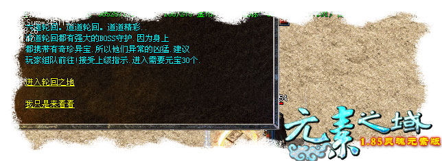 d.六道轮回:难度比较高,60分钟刷新一只暗之教皇,暴终极类装备也是唯一可以暴出特殊戒指怪