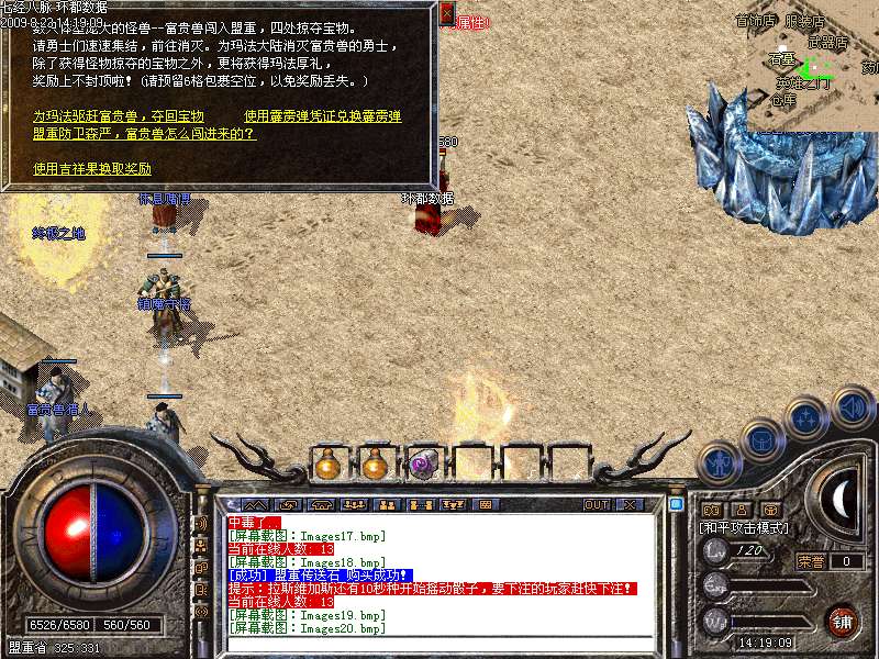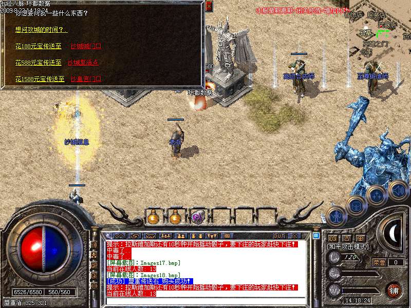 新加入沙成员练级地图.[完美的发挥沙巴克的优势],50元宝进入一次,时间无限制,里面5分钟刷500个恶魔卫士!地图范围稍大!增加乐趣!