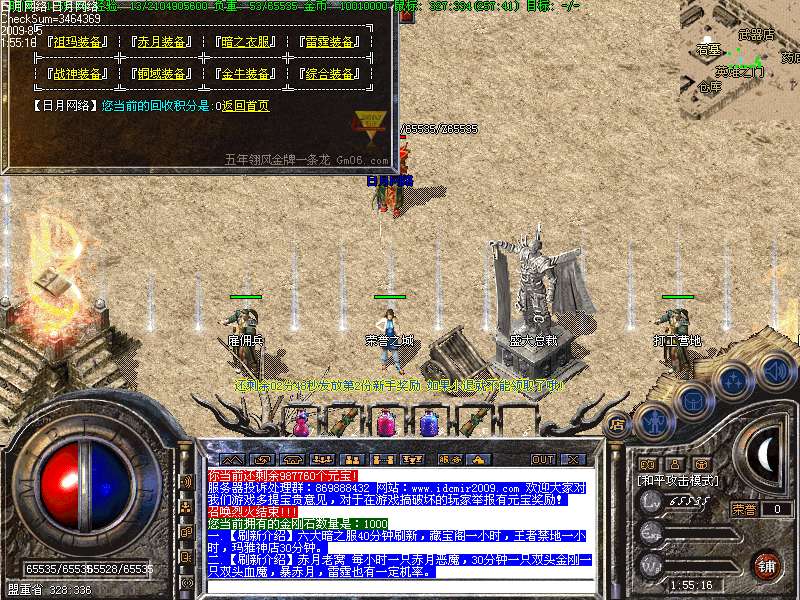3.【特色活动】封魔谷皇宫内和土药附近每2小时刷一个老魔,系统每2小时还会在沃玛大厅举行一次大型送宝,可以暴出高级装备