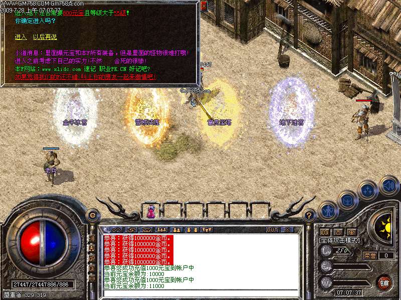 【元宝出处】为了让每个玩家都能打到元宝,新增了元宝之地地图,每次只有5分钟的时间,猪洞7层白猪也爆元宝 玩家还可以打战神/狂雷/王者装备在土城装备回收处换取元宝。