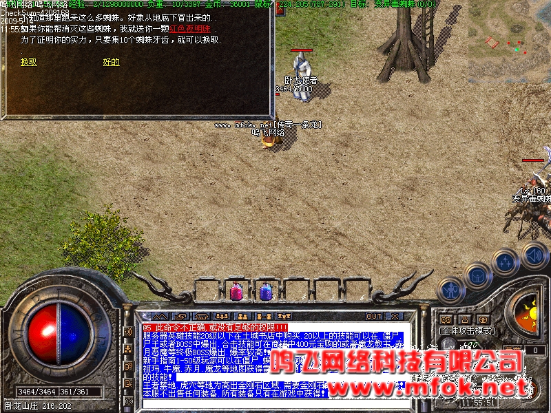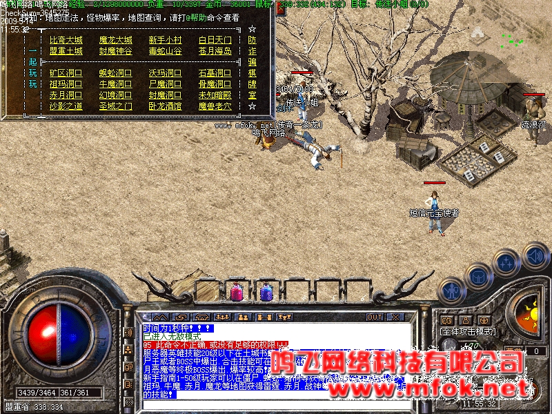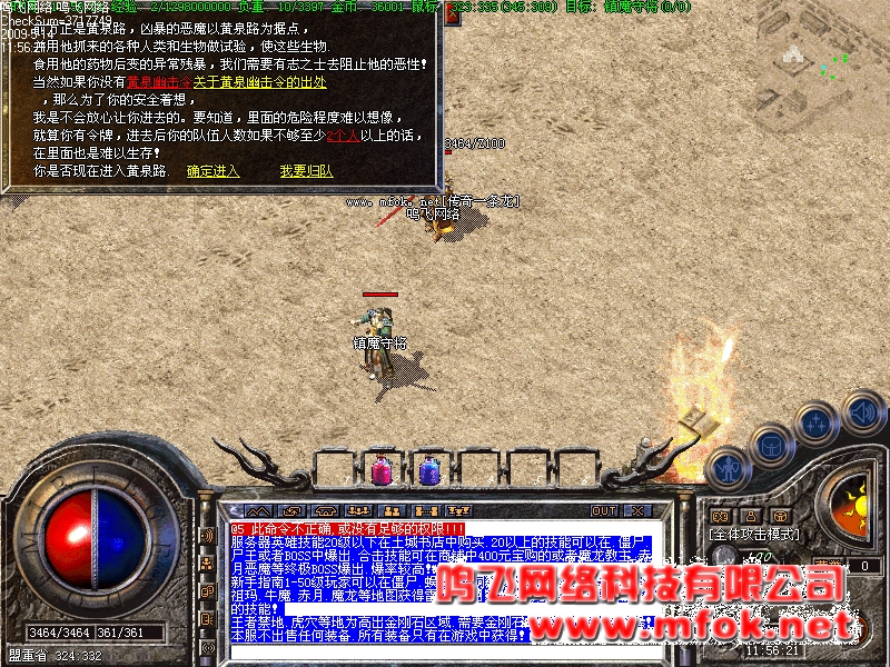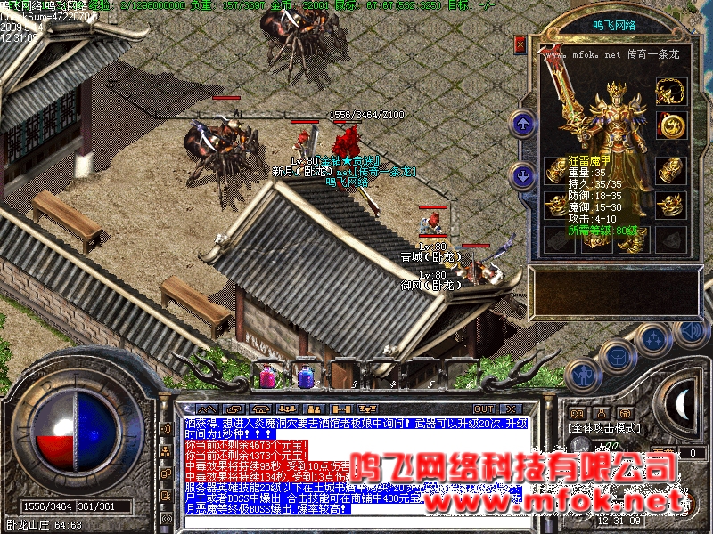 鸣飞科技的本版本更新加入护体神盾.神武术.飓风破.英雄护体神盾所有新书在赤月恶魔身体上爆出.提高除战战合击外.其他合击威力1倍.增加(雷炎洞穴传送)针对找不到酒馆在那里的玩家!