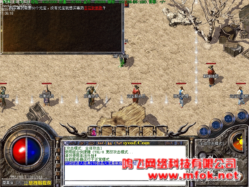 【防止被骗】请玩家注意.很多骗子利用非法手段.起空格名字站在NPC喊话装备半价出售.使玩家误以为NPC自动喊话.望玩家小心.不要贪图便宜而被骗.如被骗后果自负!!请妥善保管好您的帐号资料!找回帐号、恢复人物,联系客服或发送ID 密码提示 生日到管理员的QQ:175611123