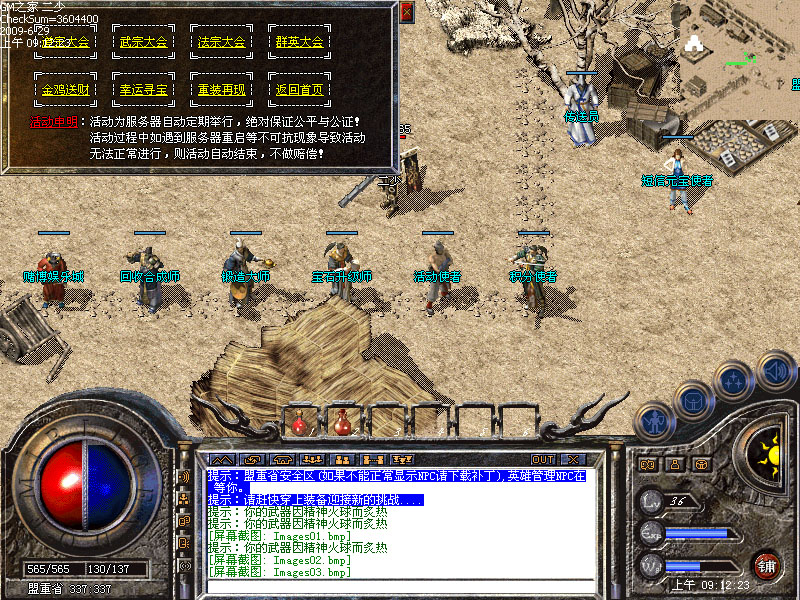 服务器将于开区后2天进行统一攻沙,沙老大奖励5万元宝加骑士2套,每个行会加油哦。。。本服务器向大家保证GM绝不参与游戏,如发现异常情况请联系本服客服QQ:123456官方网站:
