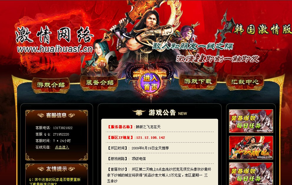 - ☉ V8引擎传奇端游【荒域专属单职业九大陆】Win一键端+配套补丁网站+架设教程