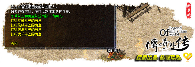 6 土城斗笠使者可以合成各种等级的斗笠,合成材料在各种怪物身上打到或在商铺中够买合成材料