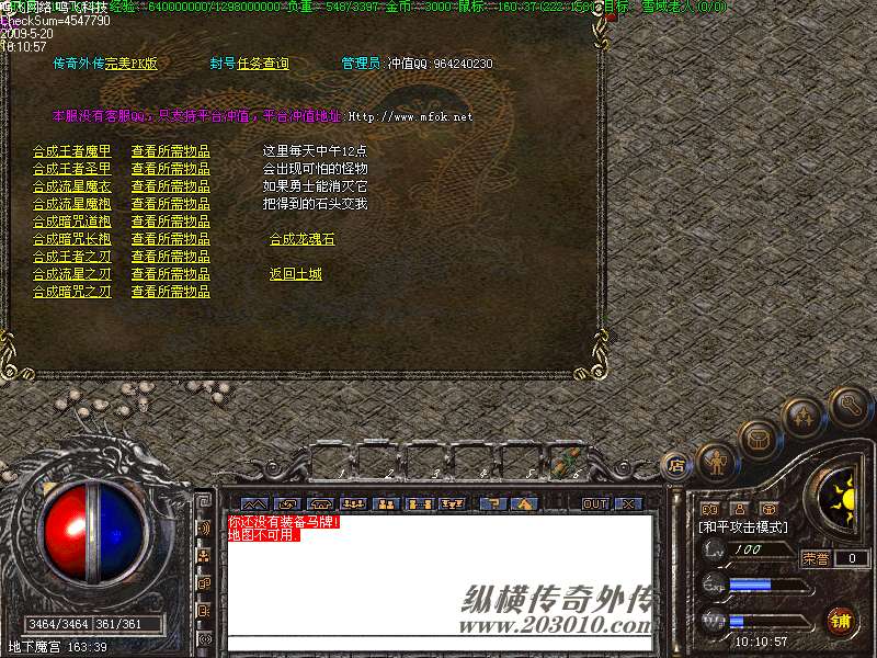 鸣飞网络2009年完美传奇外传新装备商业开区版