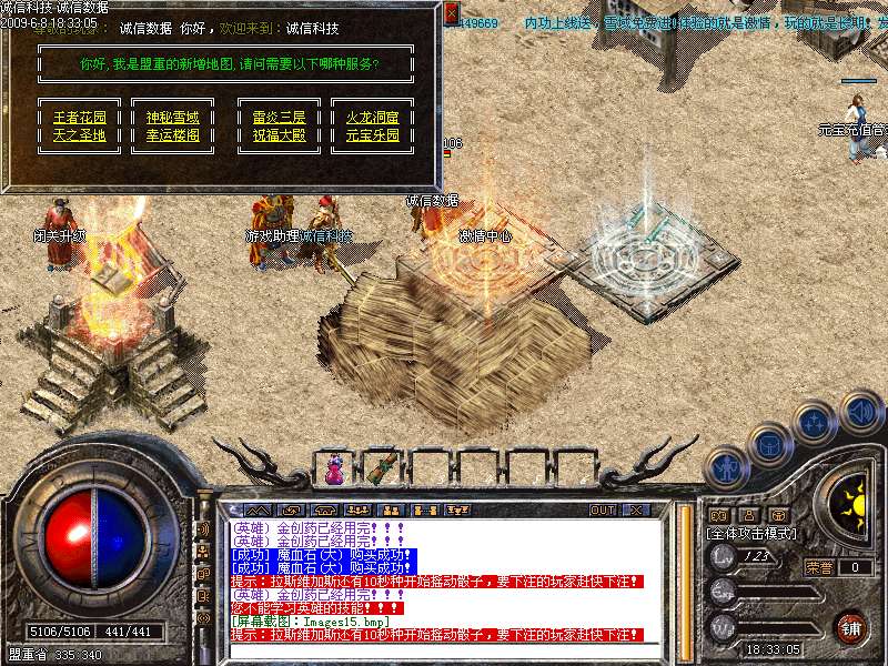 服务器最新加入幸运楼阁(幸运项链石暴率很高)/祝福大殿(祝福油的暴率非常高还有超级祝福油爆出)/练级广场(非RMB玩家的练级天堂),请玩家从土城新增地图NPC进入.