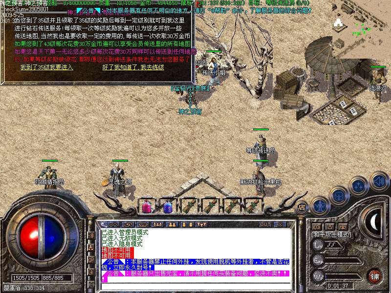 3: 更改新人练级方式,让新人上线以后更容易融入到游戏当中去,更改传送验证的验证模式,由原来的汉字模式改为数字模式方便游戏