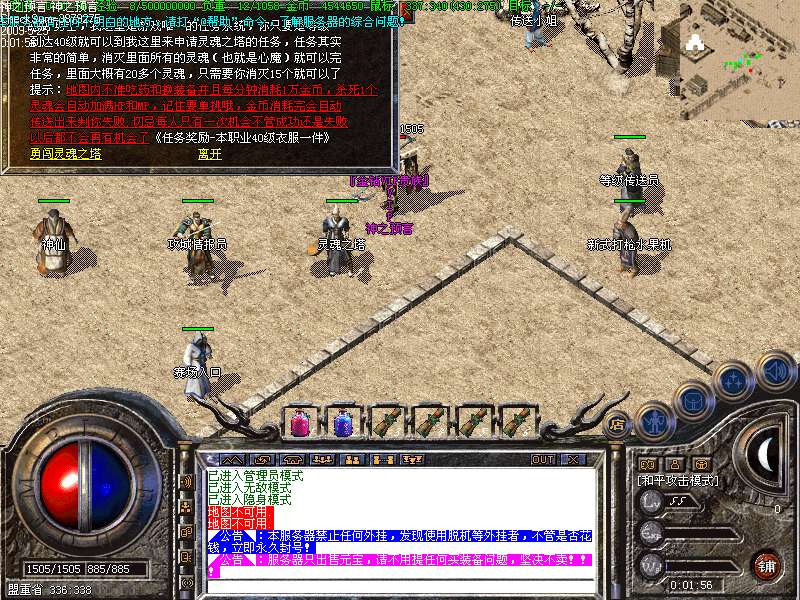 3: 增加灵魂之塔任务,玩家等级达到40的时候可以做灵魂之塔任务,解放被封印的灵魂,任务结束可以获得本职业的40级衣服一件