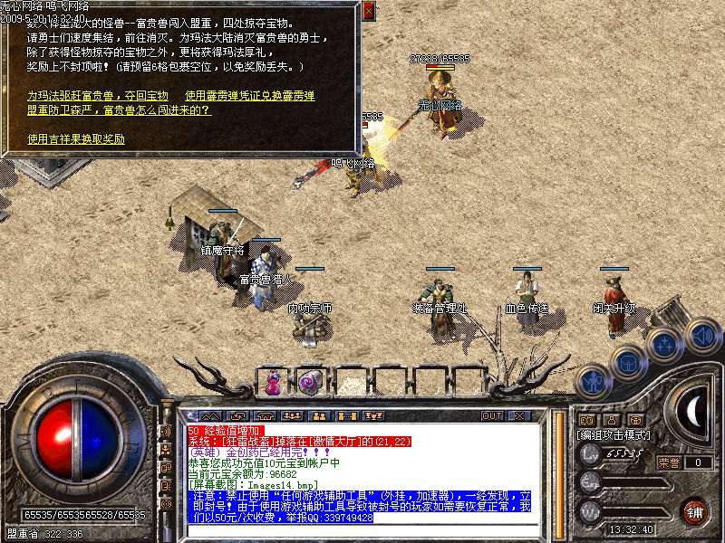 3.为回报玩家们对本站点的支持,新区元宝特价:短信冲值平台的冲值比例调整为1:500