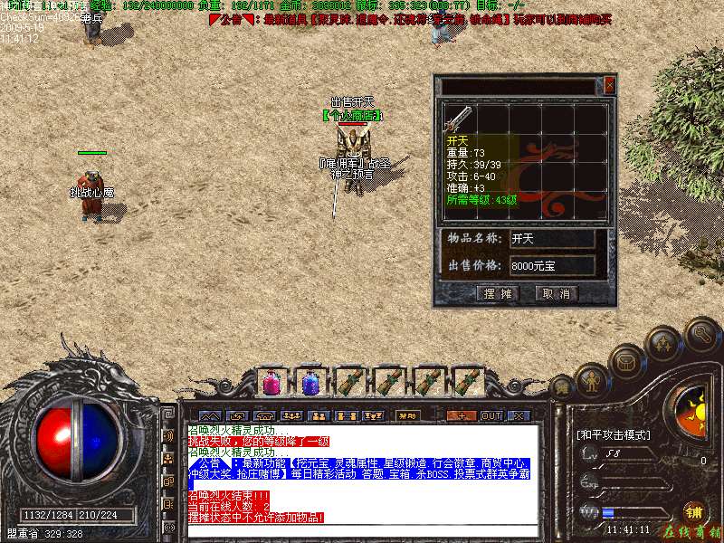13:游戏商贸中心,玩家可以到那里回收装备换元宝,也可以摆摊,让玩家没有元宝也可以用装备换元宝