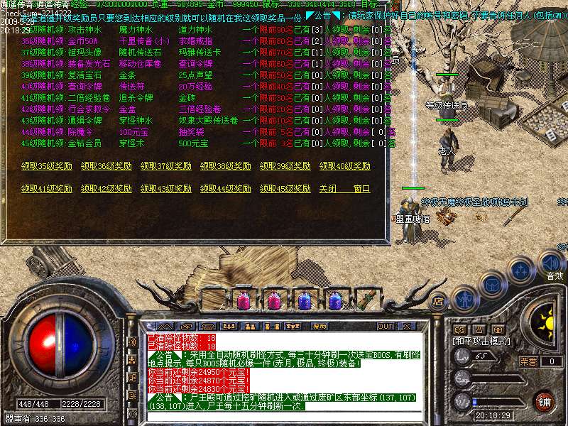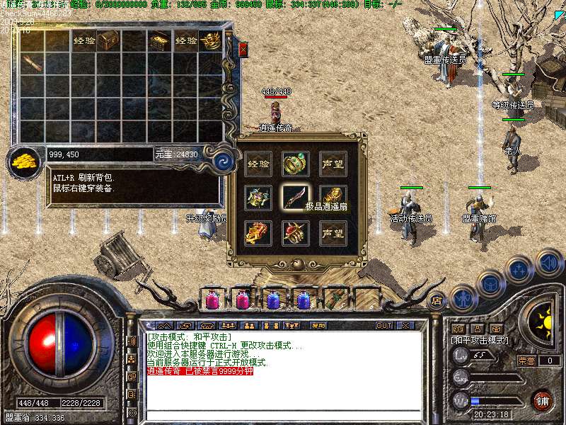 【游戏特色】灵魂属性.行会徽章.等级传送.冲级大奖.抢庄赌博.装备回收.装备拍卖.声望功能。