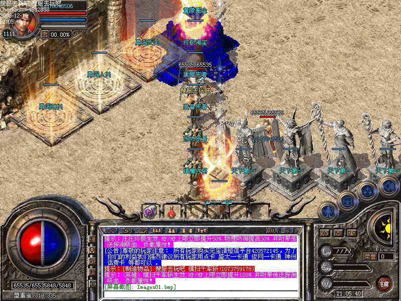 1.10更新了:加入了 PK场原地复活功能!但只限制复活10次!每次复活100元宝(可自己设置)